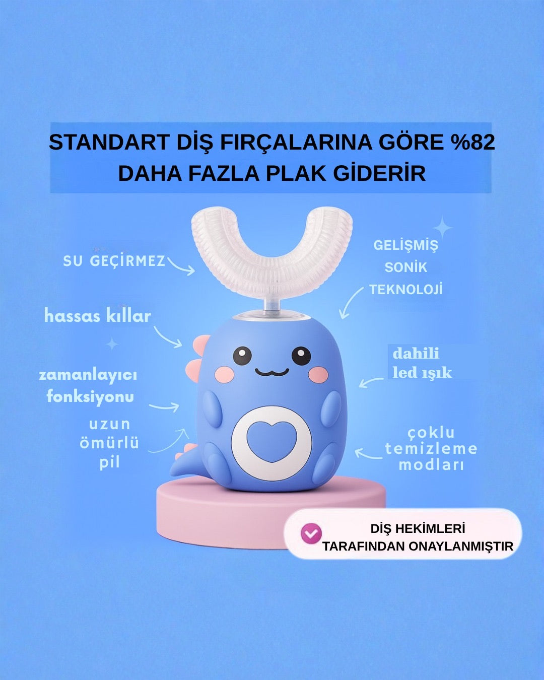 KidyBrush™, hassas diş ve diş etleri için özel geliştirilmiş sonik teknolojisi sayesinde geleneksel fırçalara göre daha hızlı, daha düzgün ve çok daha etkili bir temizlik sunar.